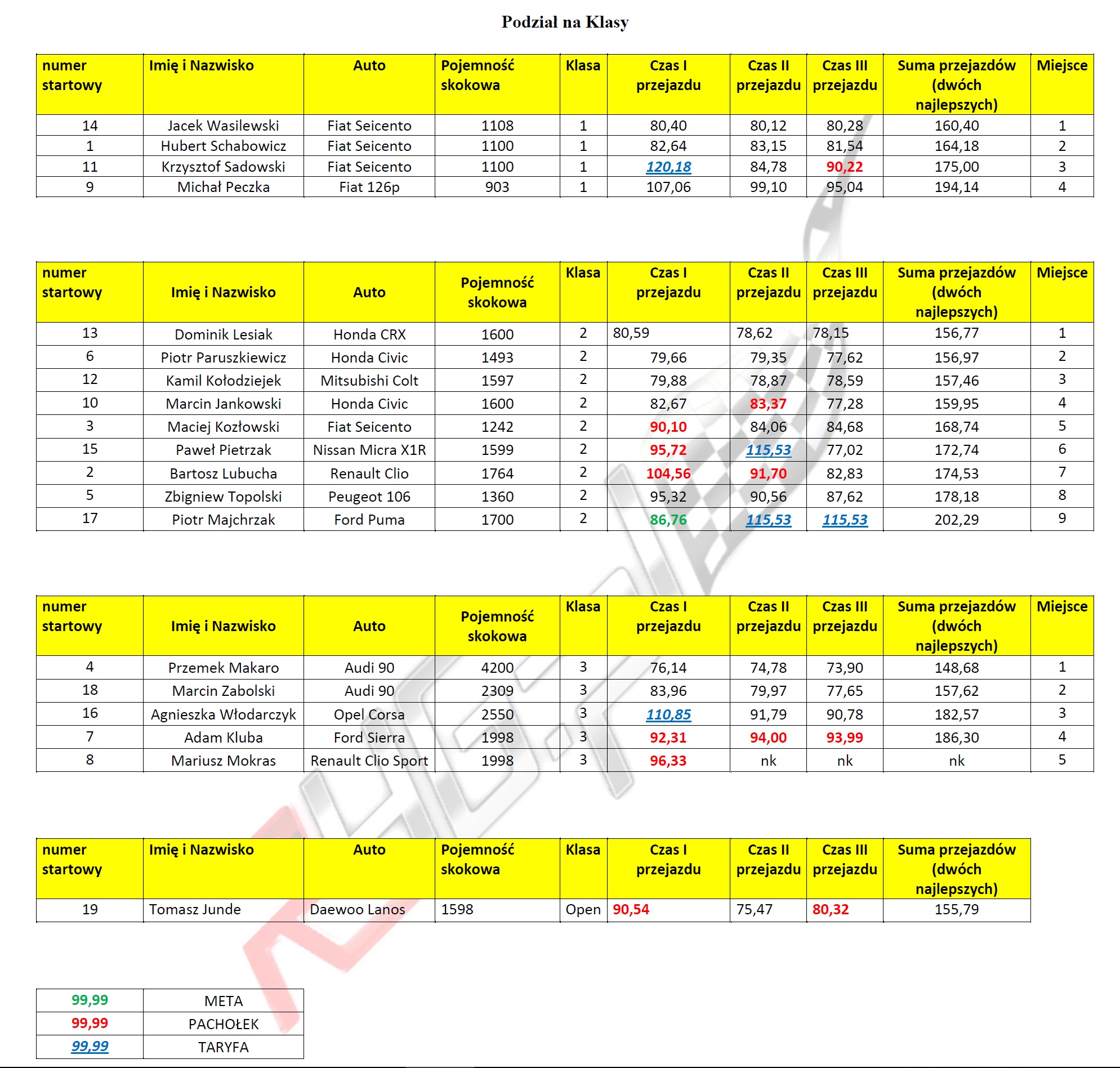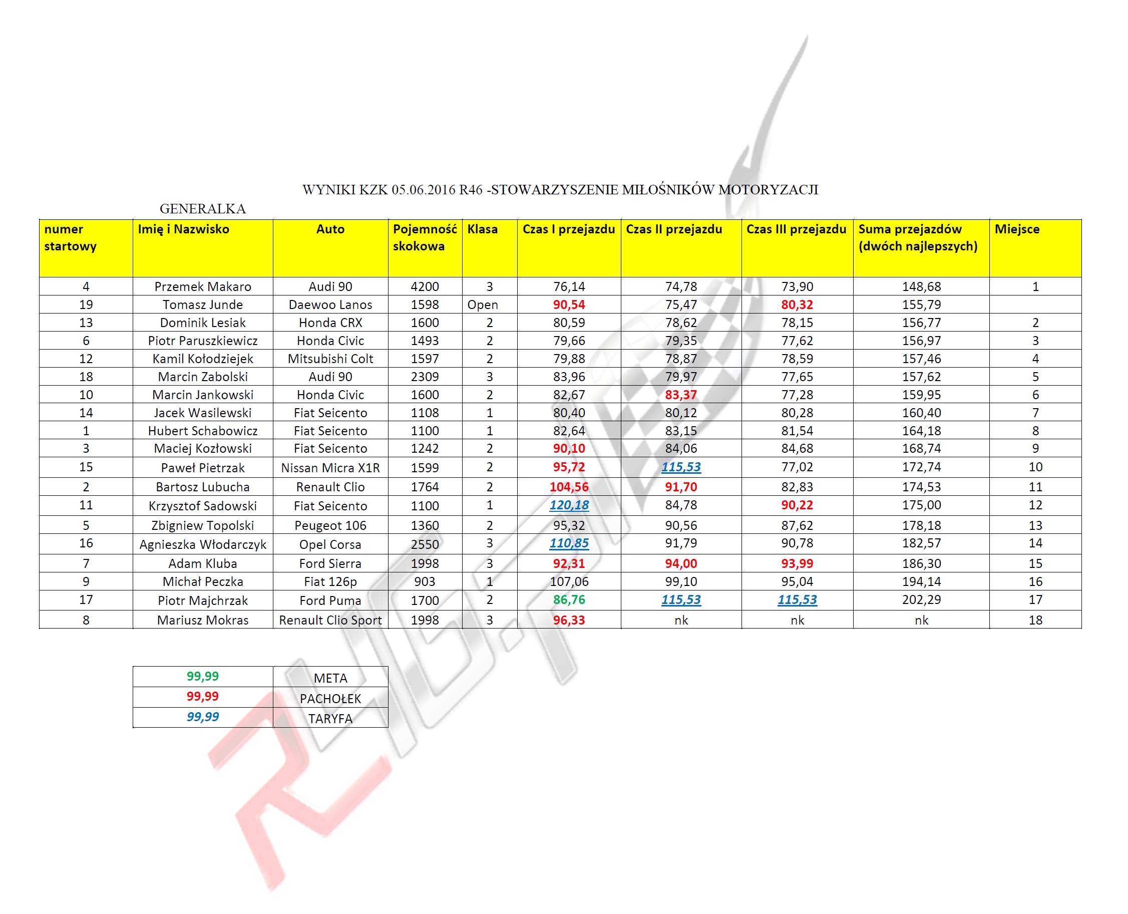 I Eliminacja Pucharu KZK Klubu R46 już za nami! Dziękujemy raz jeszcze wszystkim za przybycie. Poniżej publikujemy wyniki w klasyfikacji generalnej i w poszczególnych klasach.